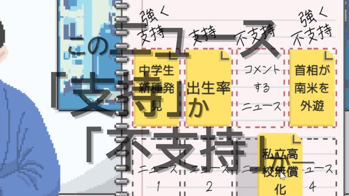 ゲームは、プレイヤーがコメンテーターとなり、ニュースの批評スタンスを選択して世論に影響を与える内容。