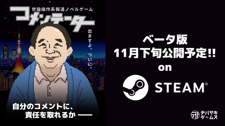 テバサキゲームズが開発する世論操作系報道ノベルゲーム『コメンテーター』のクローズドβテストが2025年11月21日よりSteamで開始された。