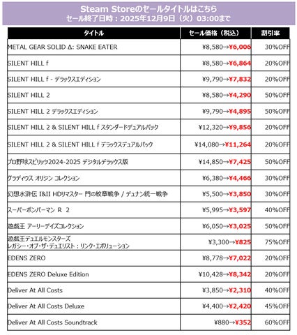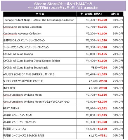 コナミセール開催!Steamで最大80%オフ!話題作も