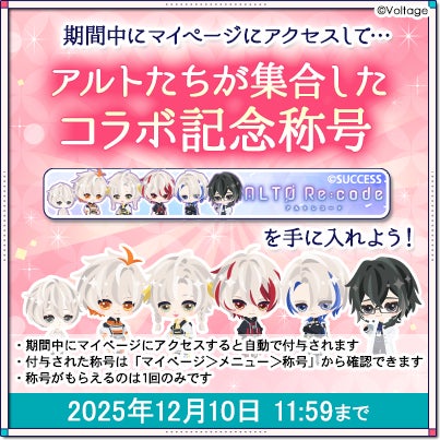 株式会社ボルテージの「幕末維新 天翔ける恋」と、株式会社サクセスの「アルトレコード」がコラボレーション!11月25日(火)より、コラボ企画が開始される。