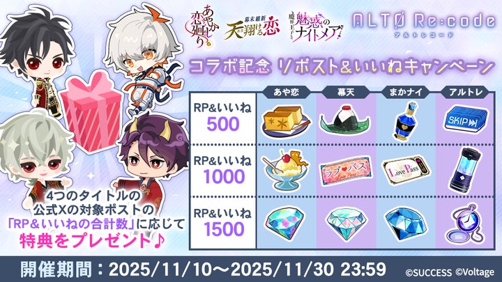 「ボル恋」と「アルトレコード」の公式Xでは、リポスト&いいねキャンペーンも開催中。
