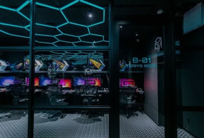 ハイスペックゲーミングPCや快適なネットワーク環境を備え、個人利用からeスポーツチーム、イベント運営まで幅広く対応する複合施設だ。