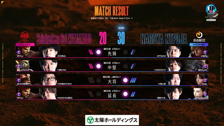 - 名古屋NTPOJAがSaishunkan Sol 熊本に勝利しプレイオフ進出決定。