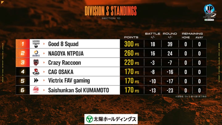 名古屋NTPOJAがプレイオフ進出決定、Good 8 Squadが1位通過。