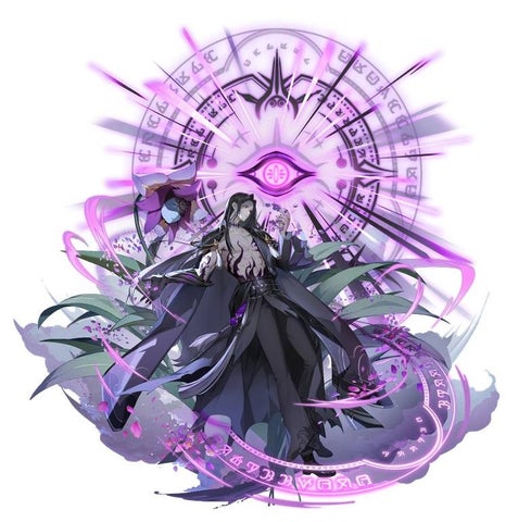 ルスレックは紫属性・アサシンで、必殺技「暗転」で敵のエナジー回復量を減少させ、戦闘中に「鬼アザミ」と「幽霊蘭」を召喚して攻撃する。