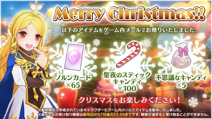 - 6.5周年記念ログインボーナスやクリスマスイベントを実施。