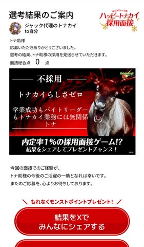 - AI面接官「サンタジャック」によるAIキャラクター対話型施策を実施。合格者には特典も用意。
