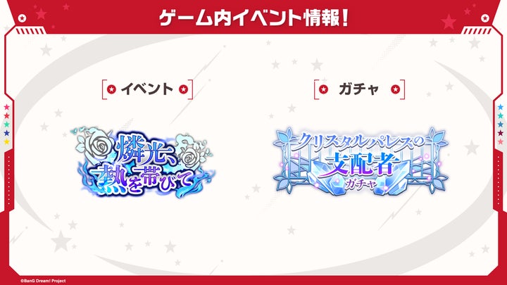 Roseliaの対バンツアー企画や、イベントP報酬で獲得できるメンバーの情報も公開されました。