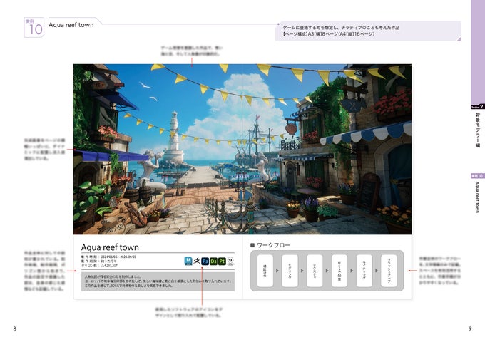 本書は、キャラクターモデラー、背景モデラー、レベルデザインのポートフォリオを掲載し、現役クリエイター兼講師の佐藤智幸氏によるポイント解説付き。