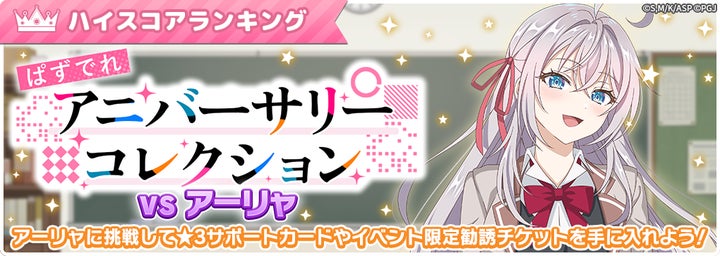 2025年11月28日(金)からはハイスコアランキングイベント「ぱずでれアニバーサリーコレクションVSアーリャ」が開催され、1周年記念のアーリャ、マーシャ、沙也加、有希、綾乃、茅咲、乃々亜が登場する特効勧誘も実施。