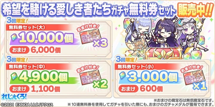 - 希望を賭ける愛しき者たちガチャ、DMM GAME PLAYER版リリース記念1日1回10連無料ガチャ