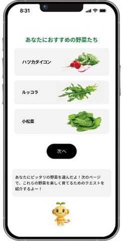 アプリ内では、栽培環境に合わせた作物の提案、クイズ形式のクエスト、ECサイト「grow STORE」との連携、AIによるアドバイス、レシピ紹介など、都市農を始める人々を多角的にサポートする機能が提供されます。