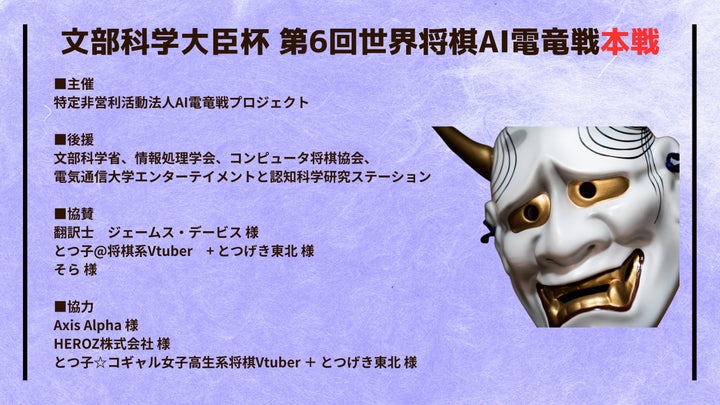 文部科学省、情報処理学会、コンピュータ将棋協会、電気通信大学エンターテイメントと認知科学研究ステーション