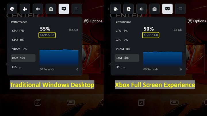 Windowsデスクトップよりも5%以上メモリを節約し、ゲーム内フレームレート向上に貢献する。