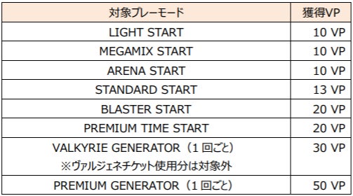 - 『SOUND VOLTEX EXCEED GEAR』のプレーや対象商品の購入でVPを獲得し、特製e-amusement passカードと交換可能。