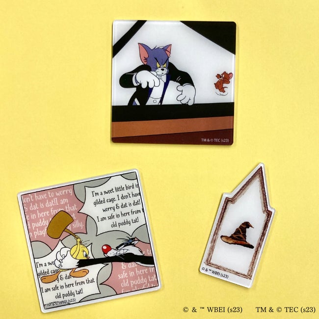 フェアでは「トムとジェリー」「ルーニー・テューンズ」「ハリー・ポッター」の商品が登場し、アクリルキーホルダーやアクリルステッカー、ミニキャンバスなどが展示されます。