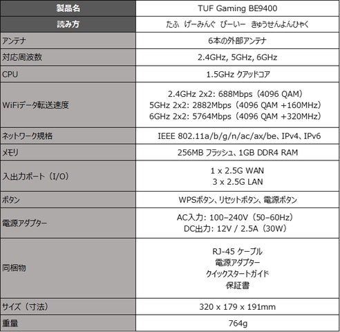 【速報】WiFi 7対応ゲーミングルーター「TUF Gaming BE9400」登場!