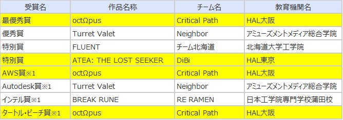 - HALは受賞作品5作品中2作品、全8賞中4賞を獲得し、圧倒的な実力を見せつけた。