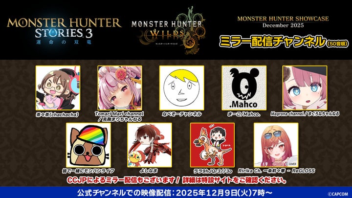• 「モンスターハンターショーケース」が12月9日(火)あさ7時に配信。