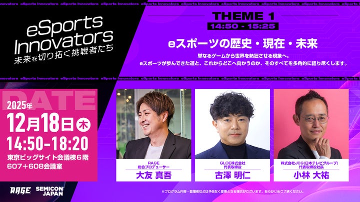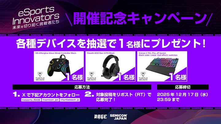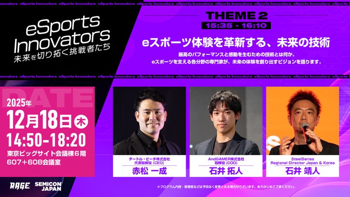 - 国内最大級eスポーツイベント「RAGE」が「SEMICON Japan 2025」特別企画「eSports Innovators」に参画。