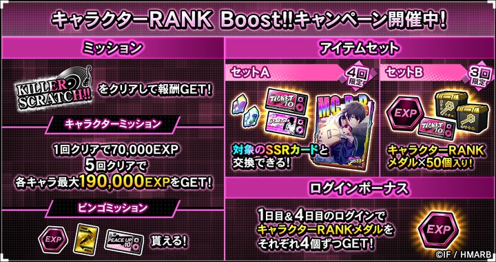 他にも、SUDDEN SCRATCH!!や、キャラクターRANK Boost!!キャンペーンなど、様々なキャンペーンが開催されている。
