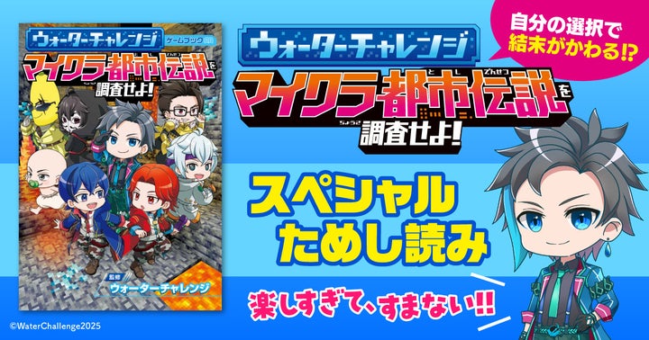 大人気YouTuber「ウォーターチャレンジ」初のゲームブック『ウォーターチャレンジ ゲームブック マイクラ都市伝説を調査せよ!』が2025年12月10日にKADOKAWAから発売。
