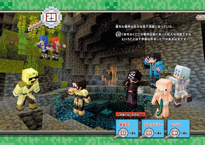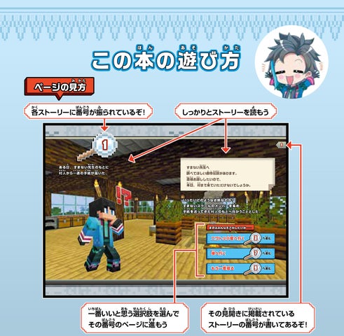 • ゲームブックは「マイクラ都市伝説」シリーズを題材とし、選択によって物語が変化する。