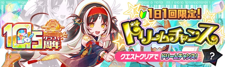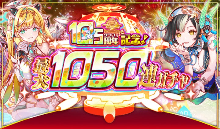 最大1050連無料ガチャ、ログインでのポリゴン105個プレゼント、最高レアリティ確定の「10.5周年テンアゲガチャ」、最大10,500ポリゴンが当たるドリームチャンスなど、豪華な内容となっている。