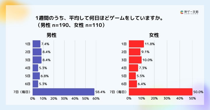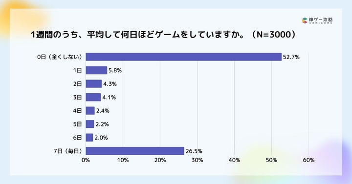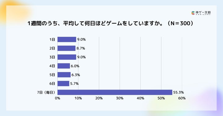 1週間のうち毎日ゲームをするユーザーは約55%と、ゲームが日常に定着しています。