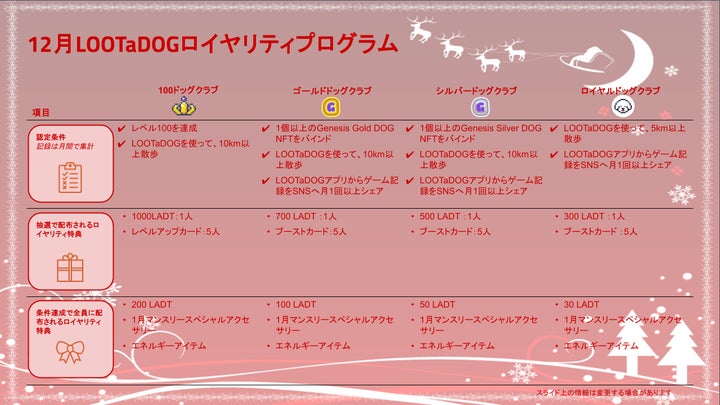 ブロックチェーンを活用したわんこお散歩アプリ「LOOTaDOG」が、12月ロイヤリティプログラムの詳細を公開しました。