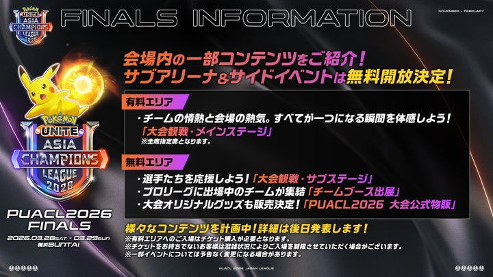 - 『ポケモンユナイト』アジア王者決定戦「PUACL2026 FINALS」のチケット販売開始。