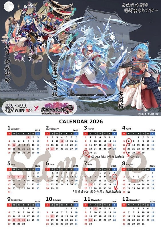 - 2026年コラボカレンダー、雪華古河城御城印、古河城御城印、[絢爛]高取城(城娘)フレームアクリルスタンド、[絢爛]高取城(城娘)御城プロジェクト:RE10周年記念御城印