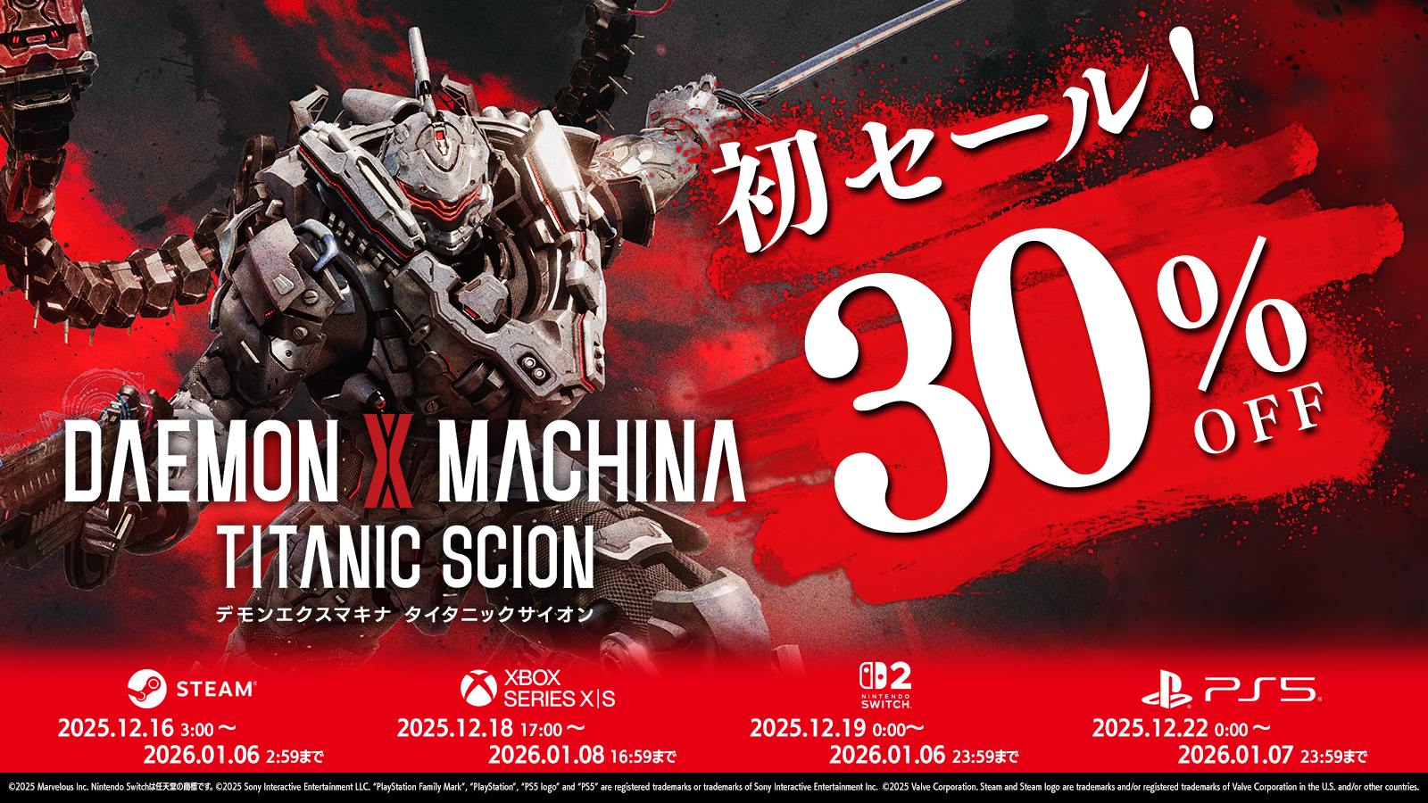 Steamは開催中、Xbox Series X|Sは12月18日から、Nintendo Switch 2は12月19日から、PlayStation 5は12月22日からセールが開始される。