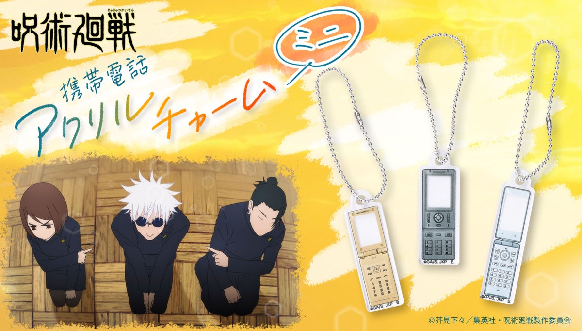 株式会社バンダイのファッションブランド事業部は、TVアニメ『呪術廻戦』第2期「懐玉・玉折」に登場するキャラクターの携帯電話をイメージした「携帯電話アクリルチャーム」と「携帯電話アクリルチャームミニ(3点セット)」の予約受付を開始します。