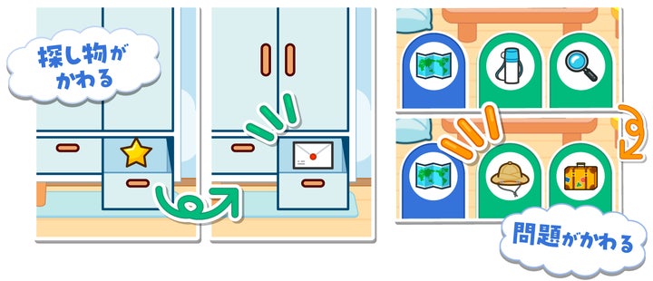 - 世界を旅してアイテムを探す絵さがしゲーム、3歳から遊べる