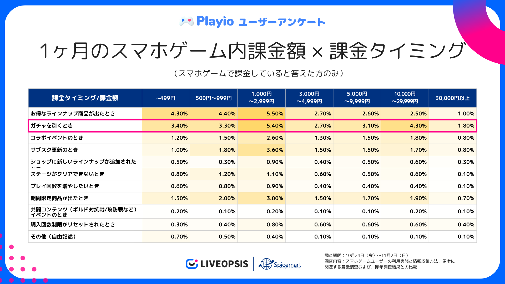 株式会社スパイスマートと株式会社Playioの共同調査により、スマホゲームユーザーの課金行動に関する興味深い傾向が明らかになった。