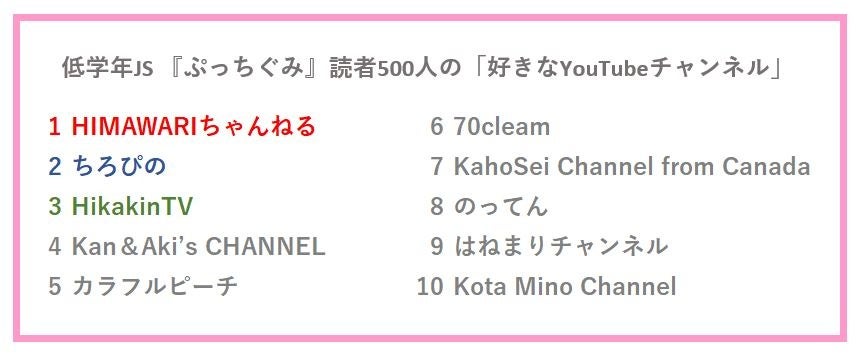 『カラフルピーチ』が人気のYouTuberランキングで1位になり、『HIMAWARIちゃんねる』が低学年の女子小学生に人気です。