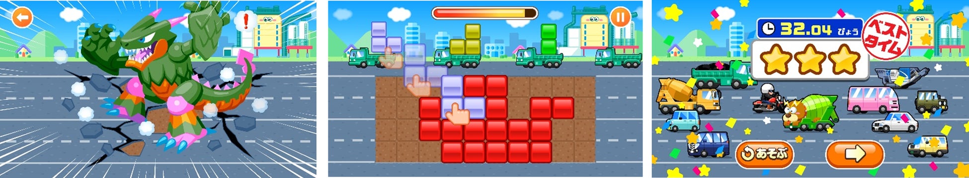 - 「アスファルトごうざいづくり」と「どうろをなおそう」の2つのゲームが楽しめる