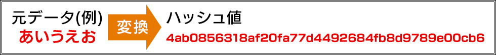 ハッシュ値は、元データが同じなら同じ、少しでも違えば全く異なるという性質を持つ。