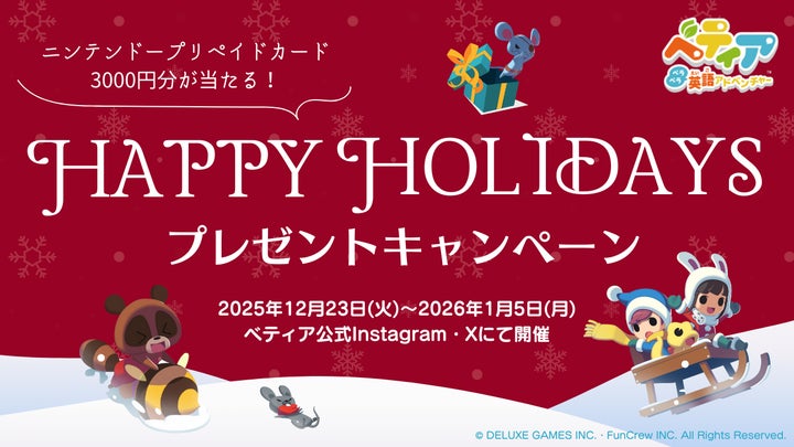 株式会社でらゲーは、Nintendo Switch向け英語学習ゲーム『ベティア ペラペラ英語アドベンチャー』の「ベティア ウィンターセール2025-2026」を開催。
