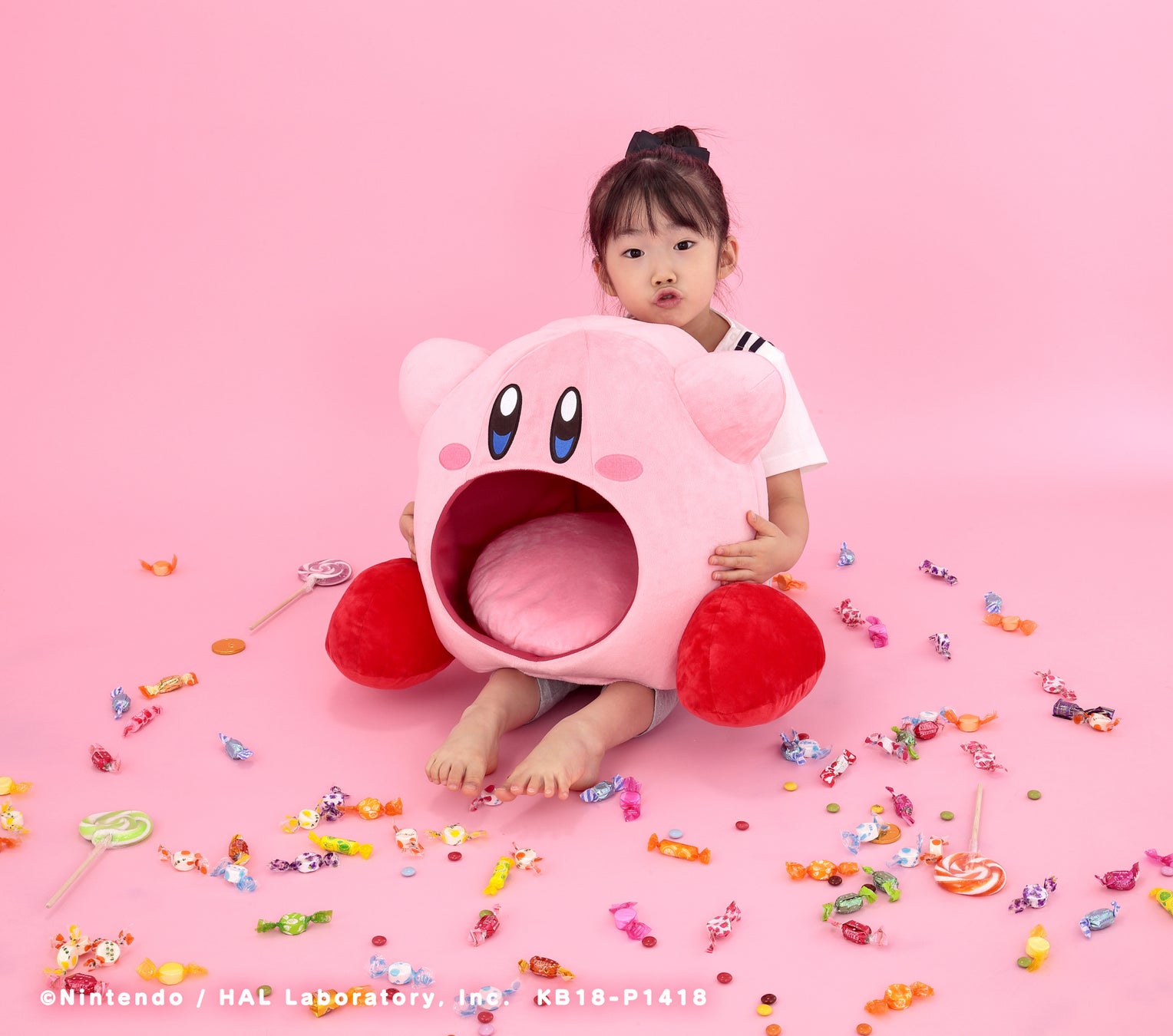 このぬいぐるみは縦約38cm×奥行約36cm×横約51.5cmの大きさで、カービィの特技である「すいこみ」を体験することができます。