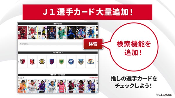 J1クラブ所属選手のカードが大量に追加され、検索・閲覧がさらに可能になった。