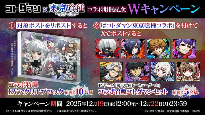 スマホアプリ『共闘ことばRPG コトダマン』とTVアニメ『東京喰種トーキョーグール』の初のコラボが、2025年12月23日(火)から開催されます。