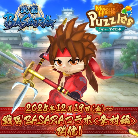 iOS/Android向けパズルゲーム『モンスターハンターパズル アイルーアイランド』にて、「戦国BASARAコラボ<幸村編>」が2025年12月19日(金)より開催されます。