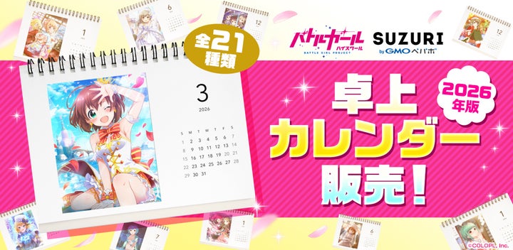 株式会社コロプラは、美少女コンテンツ『バトルガール ハイスクール(バトガ)』の10周年を記念し、オリジナル卓上カレンダーの販売を「SUZURI byGMOペパボ」内の公式ショップにて開始した。