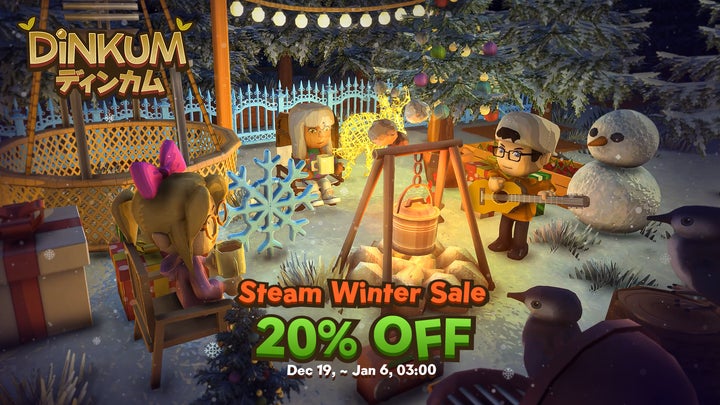- 『Dinkum(ディンカム)』がSteamウィンターセール2025に参加し、ゲーム本編とサウンドトラックセットが割引価格になる。