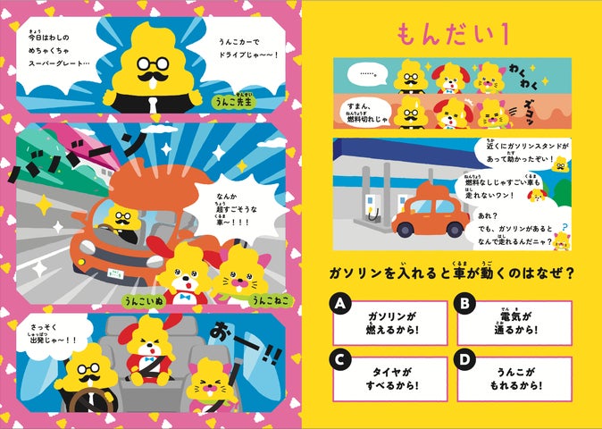 冊子では、うんこ先生たちが登場し、石油やエネルギーに関するクイズや物語を通して、子供たちが楽しく学べる内容です。