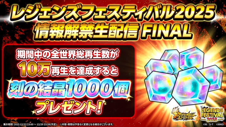 - 『ドラゴンボール レジェンズ』レジェンズフェスティバル2025情報解禁生配信が12月23日23:00より実施。