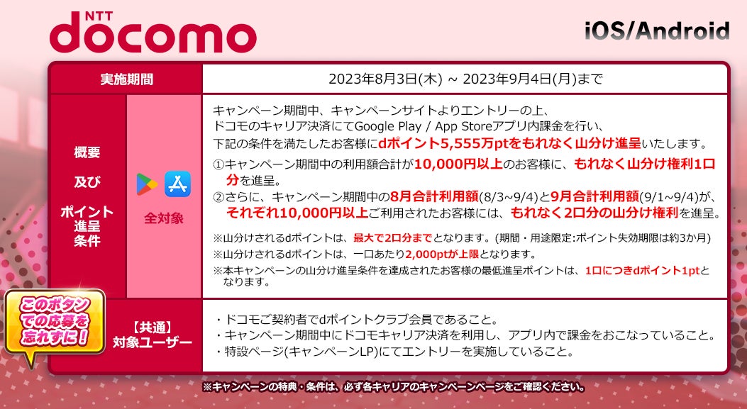 キャンペーンの詳細や参加方法は各キャリアのキャンペーンページをご確認ください。