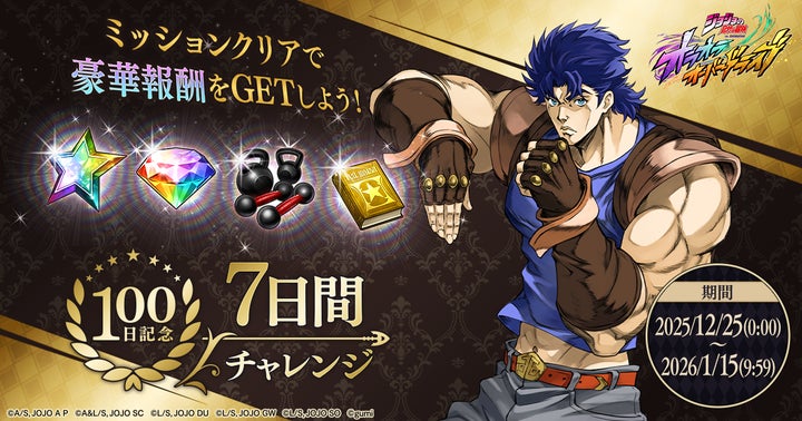 - 『ジョジョの奇妙な冒険 オラオラオーバードライブ』リリース100日記念キャンペーン開催。